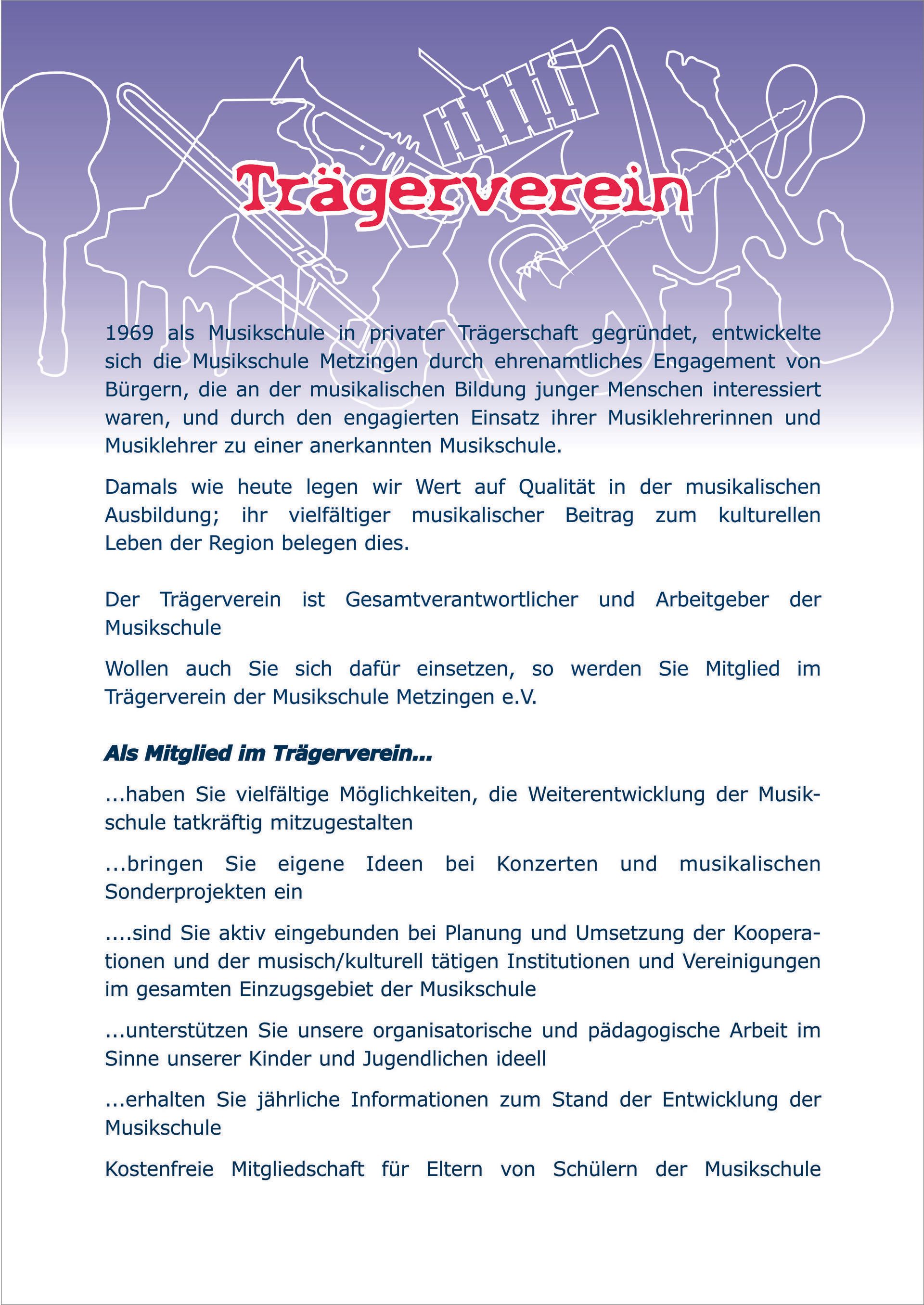 Durch Ihre Mitgliedschaft fördern Sie unseren Beitrag zur Bildung von Menschen und Förderung von Gesundheit durch Musik. Alles über unseren Verein und wie Sie mitmachen können finden Sie hier.